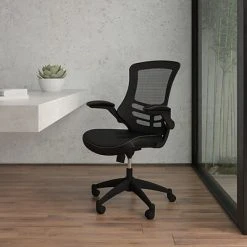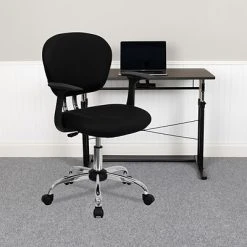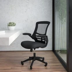 Task Chairs Flash Furniture Mid Back Leather Ergonomic Task Chair With Arms, Black (BT688BKA)