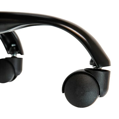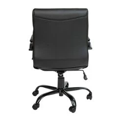 Toss out that old and boring office chair that you’ve had for years because it’s time for an upgrade with this sleek mid-back LeatherSoft office chair. Upholstered in soft and durable LeatherSoft upholstery and paired with a black base help construct this modern office chair. Designed with your comfort in mind, this ergonomic desk chair features ample padding to get you through an 8-hour workday. With its adjustable features, you can lean back while you take a quick phone call or lock in an upright position when it’s time to focus. The knob located underneath the seat adjusts the force needed to recline. Improve the look at your desk or work area with this stylish Mid-Back Black LeatherSoft Office Chair with Black Base that is highlighted by attractive horizontal line stitching. A pressure-reducing waterfall front edge seat and armrest pads round out the look and comfort of this chair.
