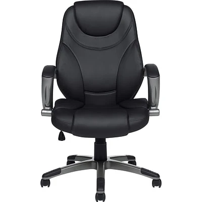 This Global bonded black executive chair features a modern design that stands out as professional, attractive and sleek. Its soft bonded leather upholstery is comfortable against the skin and durable enough to last. This Global luxhide high-back executi ve chair is features adjustable seat height and tilt tension for all-day comfort.