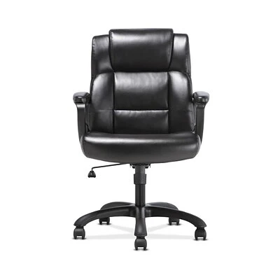 The 3-Oh-Five mid-back executive chair features luxurious SofThread leather for an upscale look and feel, making it a smart and stylish solution for any application. It offers simple and intuitive controls such as pneumatic seat height adjustment, 360-degree swivel, tilt tension and tilt lock for added customizability and comfort. The contemporary tapered arms add to the modern appeal. The comfort, stylish look, and price point of this chair make it a perfect addition to the office, whether at work or at home. This chair meets or exceeds industry standards for safety and durability, and is backed by a limited 3-year warranty.