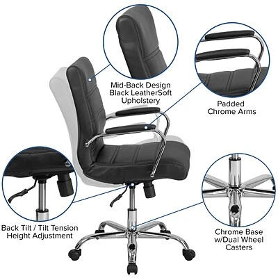 Mid-Back Leather Executive Swivel Office Chair with Chrome Arms