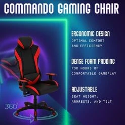 Complete the ultimate gaming setup with this Commando gaming chair by Hanover. Plush, supportive padding, ergonomic design, and eye-popping color accents make this unique furniture look as great as it feels for hours of gaming. Generously padded headrest and lumbar pillow complement the adjustable seat to allow customization to your body so you can focus without needing a break to stretch. Don’t let your gaming be interrupted by chair malfunctions at a crucial moment in battle. Get the pinnacle of comfort with Hanover’s Commando gaming chairs.