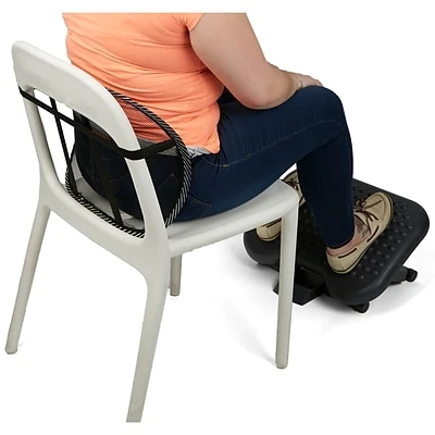 (Back Support) Strap that allows you to pull over your seat according to how big the back of the chair is without having to worry if it’s too big or small – The strap is made of stretchable material for this reason; (Foot Rest) Flat design makes for easy storage