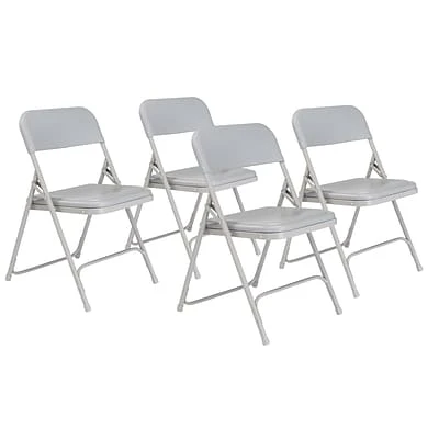 National Public Seating Steel Folding Chair allows you to fold and stack neatly for storage.