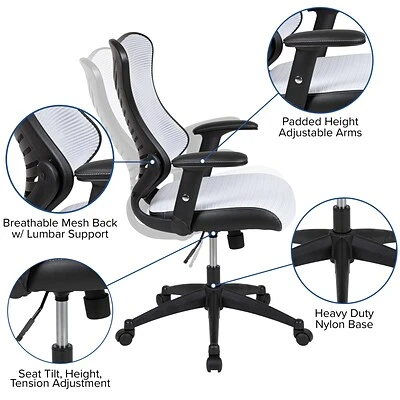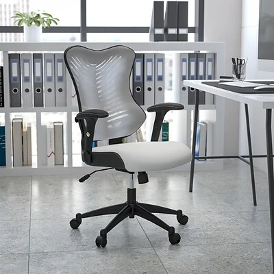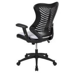 If you’ve never owned a mesh back chair, then you’re in for a real treat with this mesh ergonomic task chair. The ventilated design allows air to circulate to your back, keeping you cool and comfortable enabling you to concentrate on the task at hand and increasing your productivity. This chair has important features, such as an innovative curved back with lumbar support, pneumatic seat height adjustment and the ability to recline/rock back and forth with the tilt lock mechanism that make your purchase worthwhile. Padded and adjustable arms offer proper relief to your shoulders and neck while the waterfall seat reduces pressure on your legs for maximum comfort. Aesthetically pleasing ribbed details and contrasting stitching on the seat and arms make this computer chair a welcome addition to your workspace whether you work in the office or from home. Upgrade your seating with this designer executive office chair and make your work day much more enjoyable.