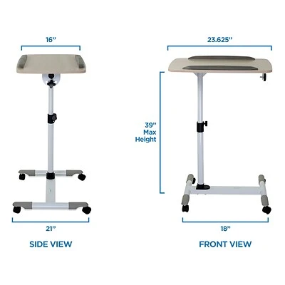 Versatile uses as an over-bed table tray, laptop cart, medical tray or a projector stand. Constructed for heavy-duty materials and supports up to 22 lbs.