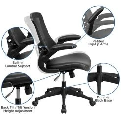 Enjoy everyday comfort and support in your office using this desk chair with wheels. Designed to provide ample airflow and maneuverability, our mesh back office chair offers the perfect way to sit comfortably at your desk for long hours. Crafted from quality materials for maximum durability and comfort, the construction features a transparent mesh back for plenty of air circulation. The midback office chair design includes built-in lumbar support to help alleviate back strain on those extra-busy workdays. Gently padded for a plush feel, the seat includes a waterfall front edge to help remove pressure from your lower legs and improve circulation while seated. Adjust your office desk chair with the pneumatic adjustment lever that controls the height of your seat, and easily switch between tasks with 360 degrees of swivel motion and dual-wheel casters that provide smooth rolling motion for maneuvering around your desk.