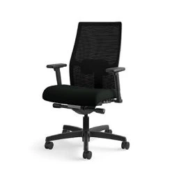The advanced synchro-tilt control mechanism is the best HON has to offer, and reclines just the way you like. Height- and width-adjustable arms and adjustable lumbar support create the customizable comfort that perfectly fits you. A breathable 4-way stretch mesh back lets the air, and the comfort, flow freely. When you’re ready to take the next step up in task seating, look no further. Very easy assembly. 4-way stretch mesh back color is Black, seat fabric and frame color are Black.