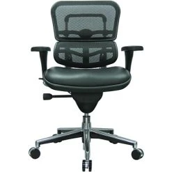 Say goodbye to bad posture with this Raynor Eurotech Ergohuman mid-back office chair. Each seat is equipped with a self-regulating lumbar support, a supportive mesh backrest, and a pair of height-adjustable arms. Simply adapt the chair to suit your body type and experience its ergonomic benefits. This seat is weight rated to 250 pounds.