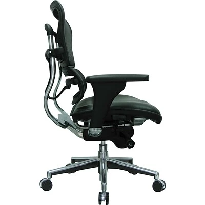 Made of leather, the seat of the Eurotech Seating Ergo Human Chair is highly comfortable. You can lock the back angle of the chair in three different positions with its 3 position tilt lock adjustment or you can also use the tilt lock adjustment to recline in your desired position. The other utilities of the chair include synchro tilt mechanism, sliding seat and pneumatic height adjustment, which in unison make the chair a perfect choice for any office. Rest your forearms on the height adjustable padded arms of the chair with ease.